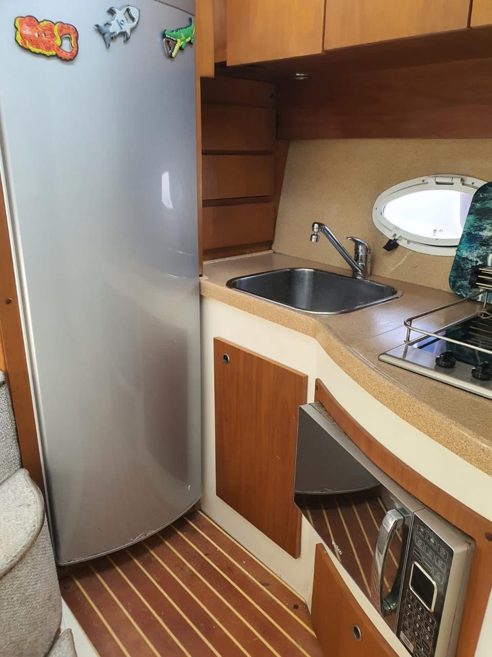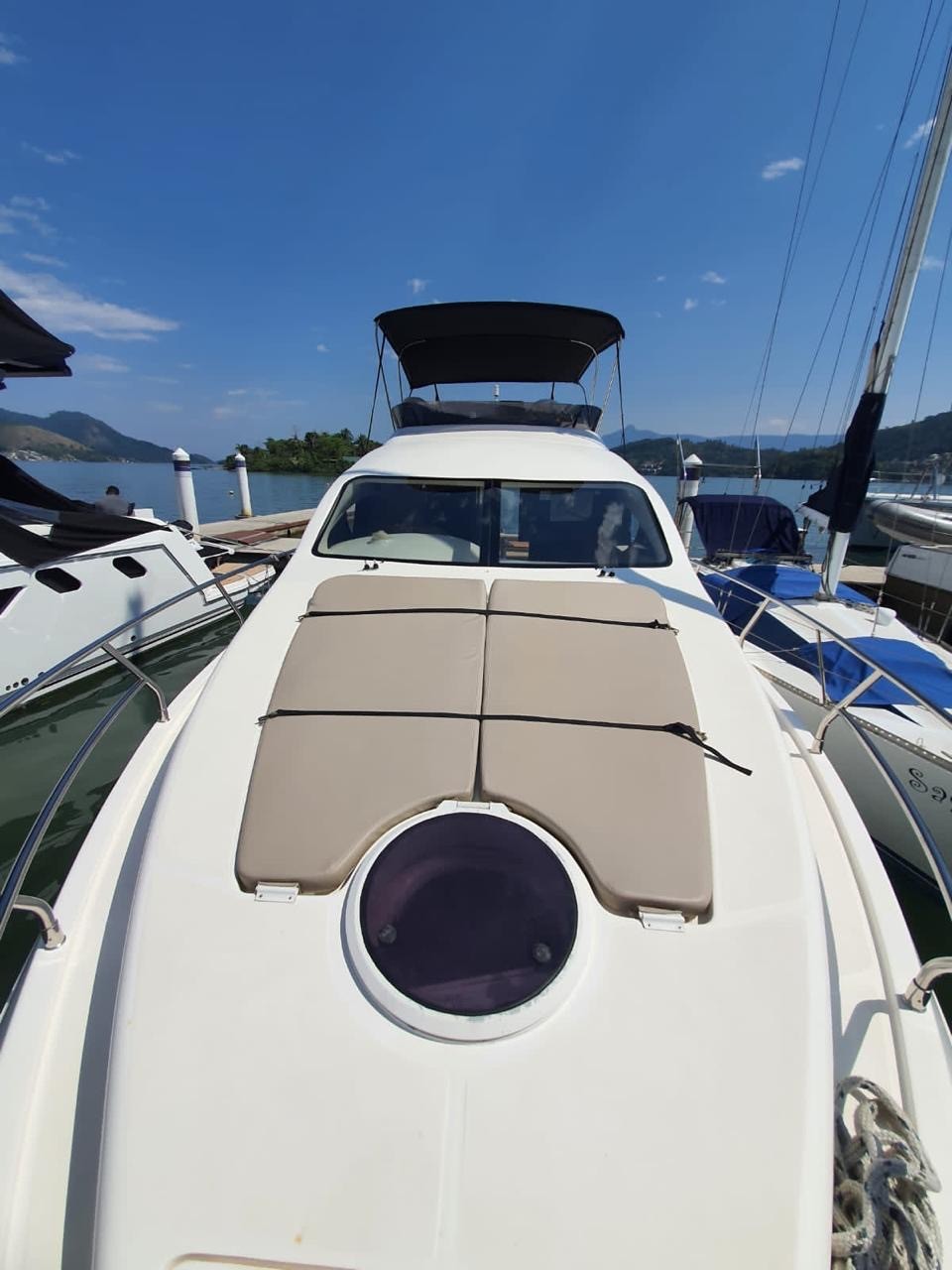 Embarcação completa, com gerador, ar condicionado, wi fi, duas TVs, som potente, geladeira, fogão, cooler, churrasqueira, praça de popa em teka, plataforma de popa e GPS.
